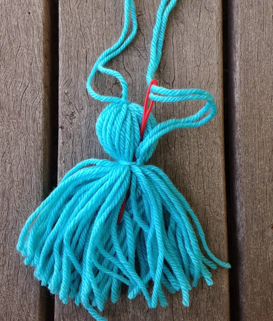 6. Using a yarn needle, thread the ends into the centre of the tassel.